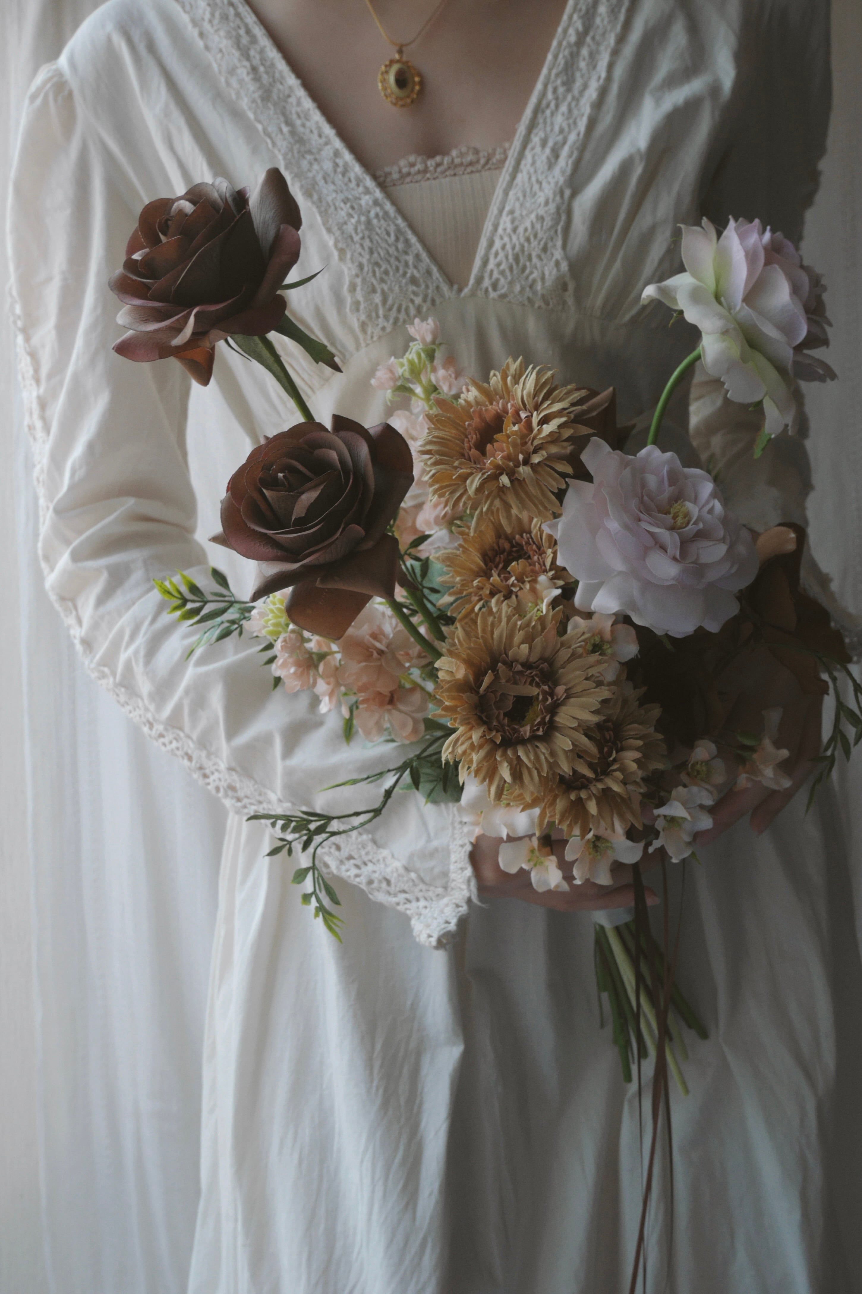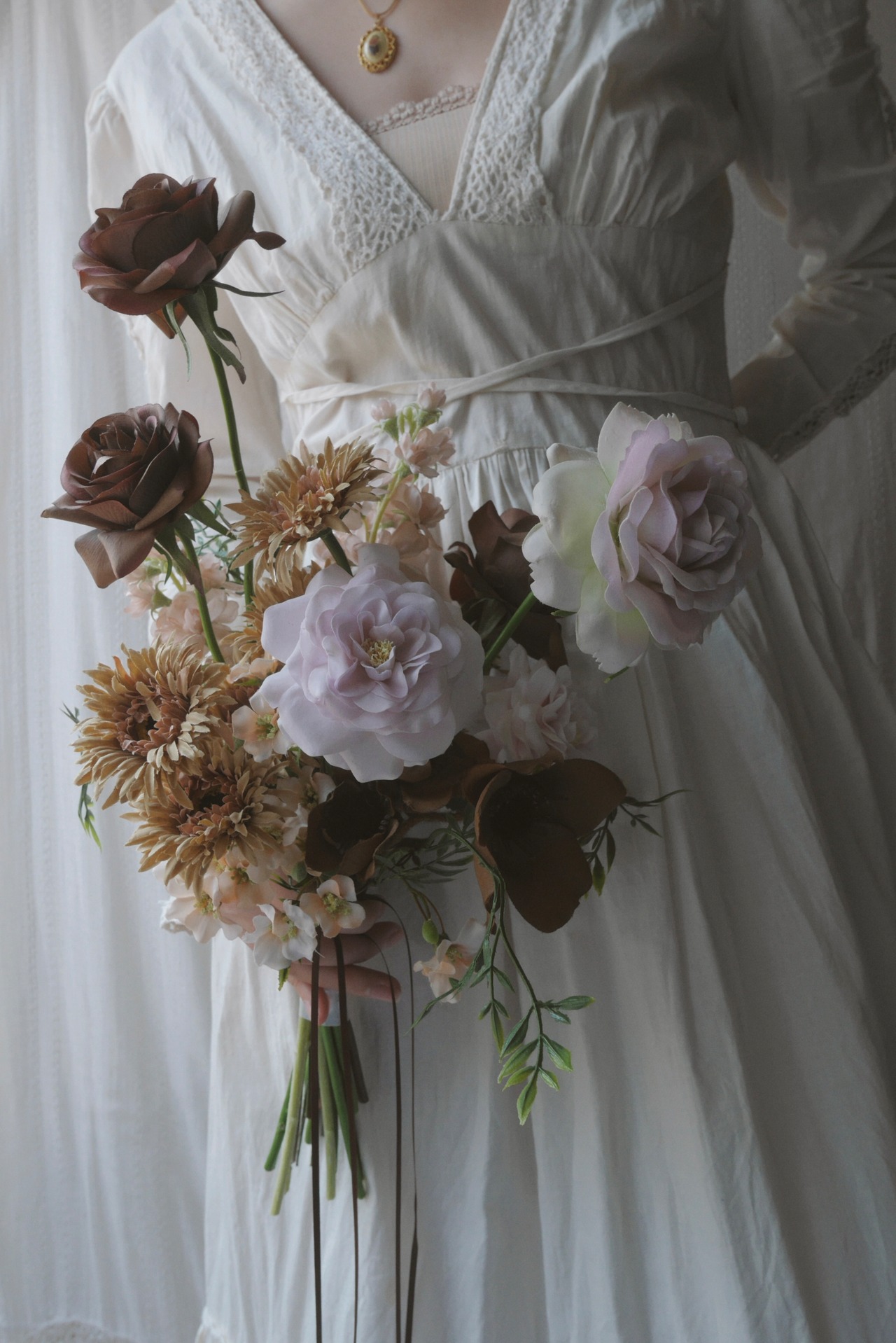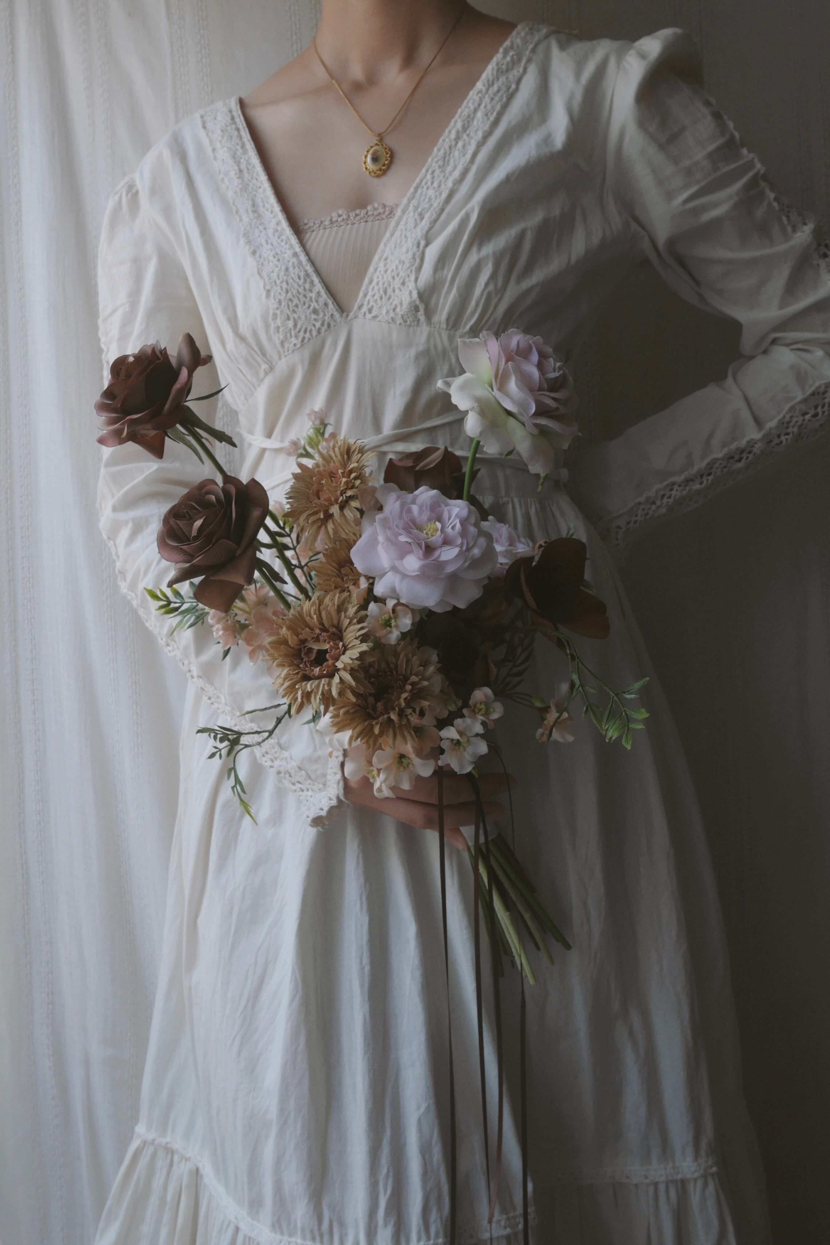 クラシカルな装いにも、静けさをまとうウェディングにもよく似合う大人の甘さを感じさせるひと束。